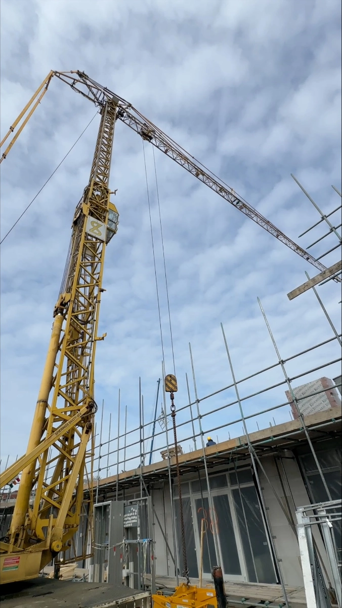 Netcongestie maakte het onmogelijk om voldoende aansluitcapaciteit te krijgen op de bouwlocatie. Maar ook zonder dat speelde een rol: een torenkraan in een dichte woonwijk brengt extra verantwoordelijkheid met zich mee. Diesel aggregaten zorgen voor geluidsoverlast, uitstoot en geur — niet bepaald wat de omgeving verwacht bij de bouw van hun nieuwe buurt.